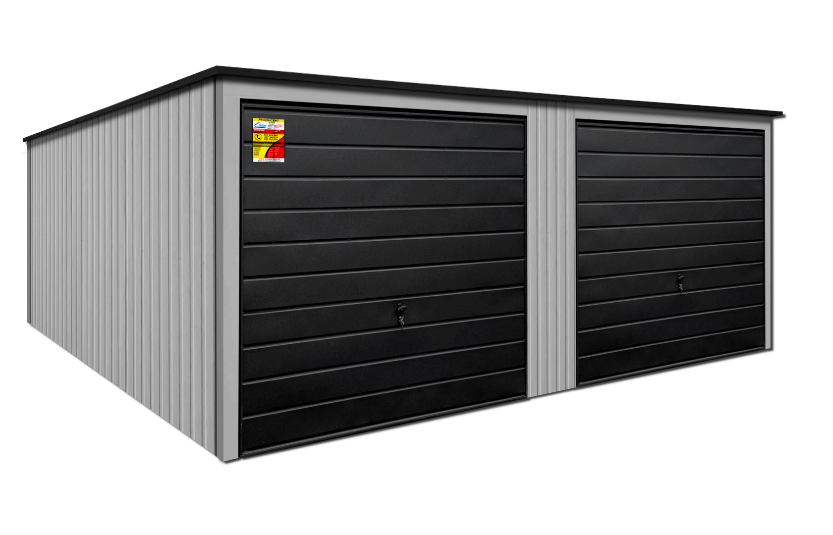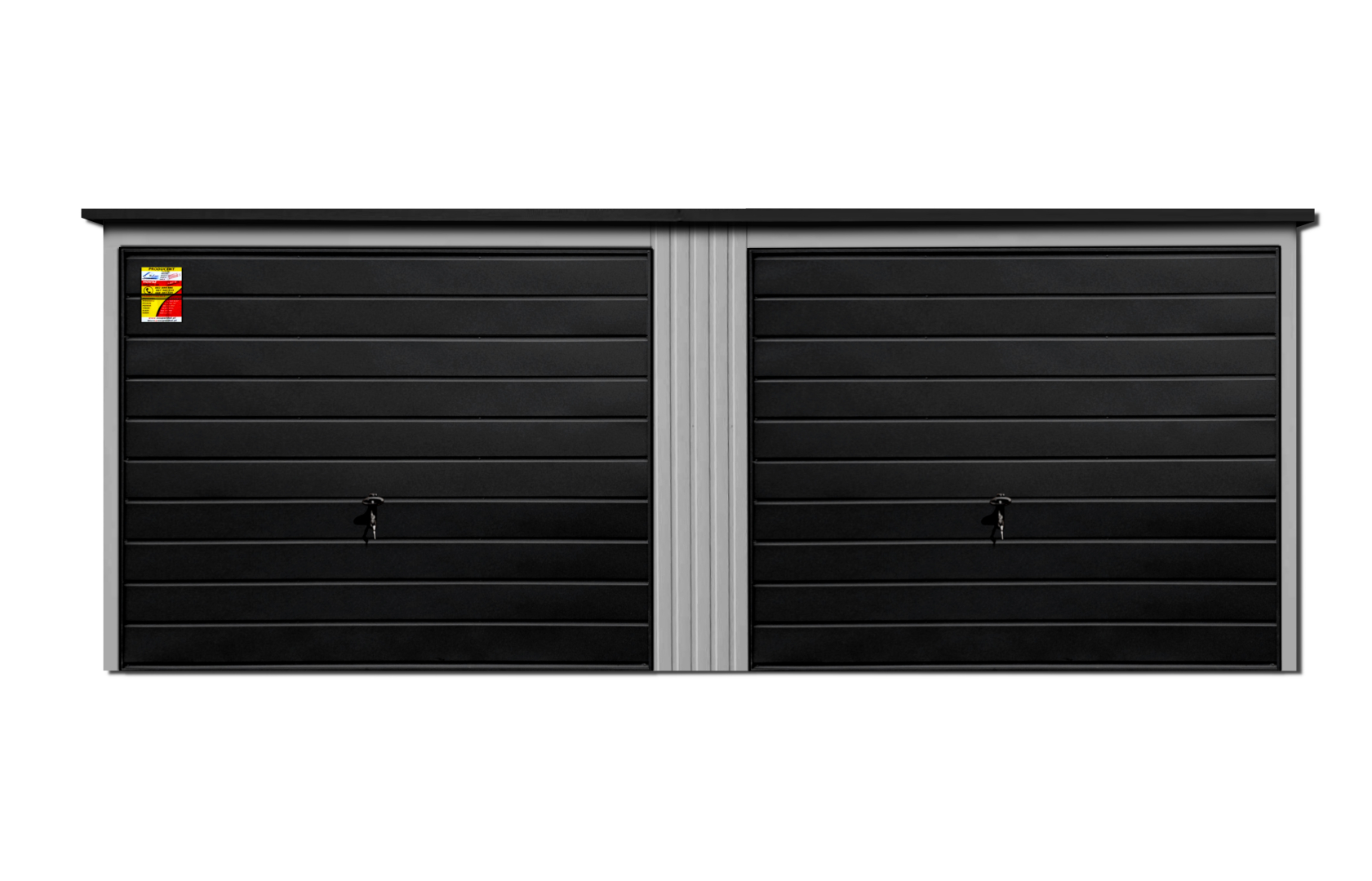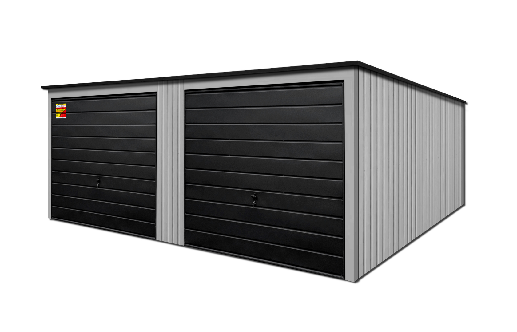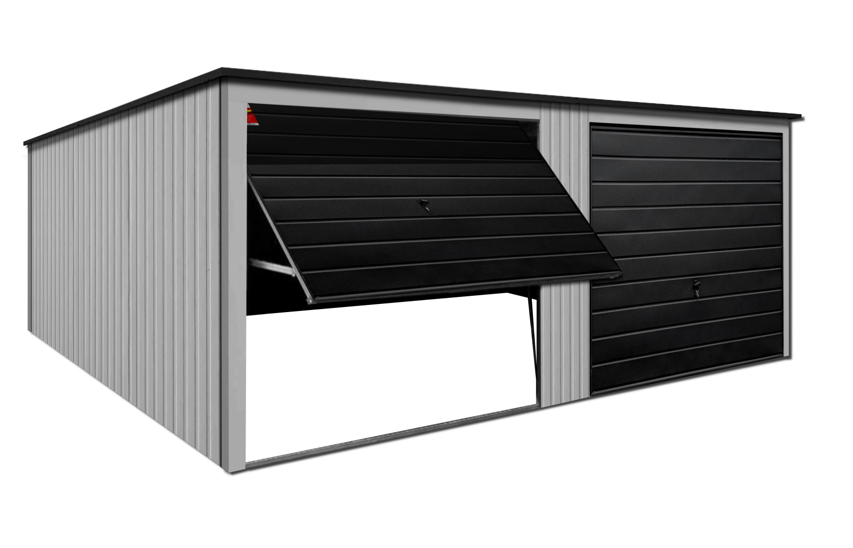 Garaż blaszany 4X4 LUX – Dwuspadowy dach, brama uchylna, czarny mat