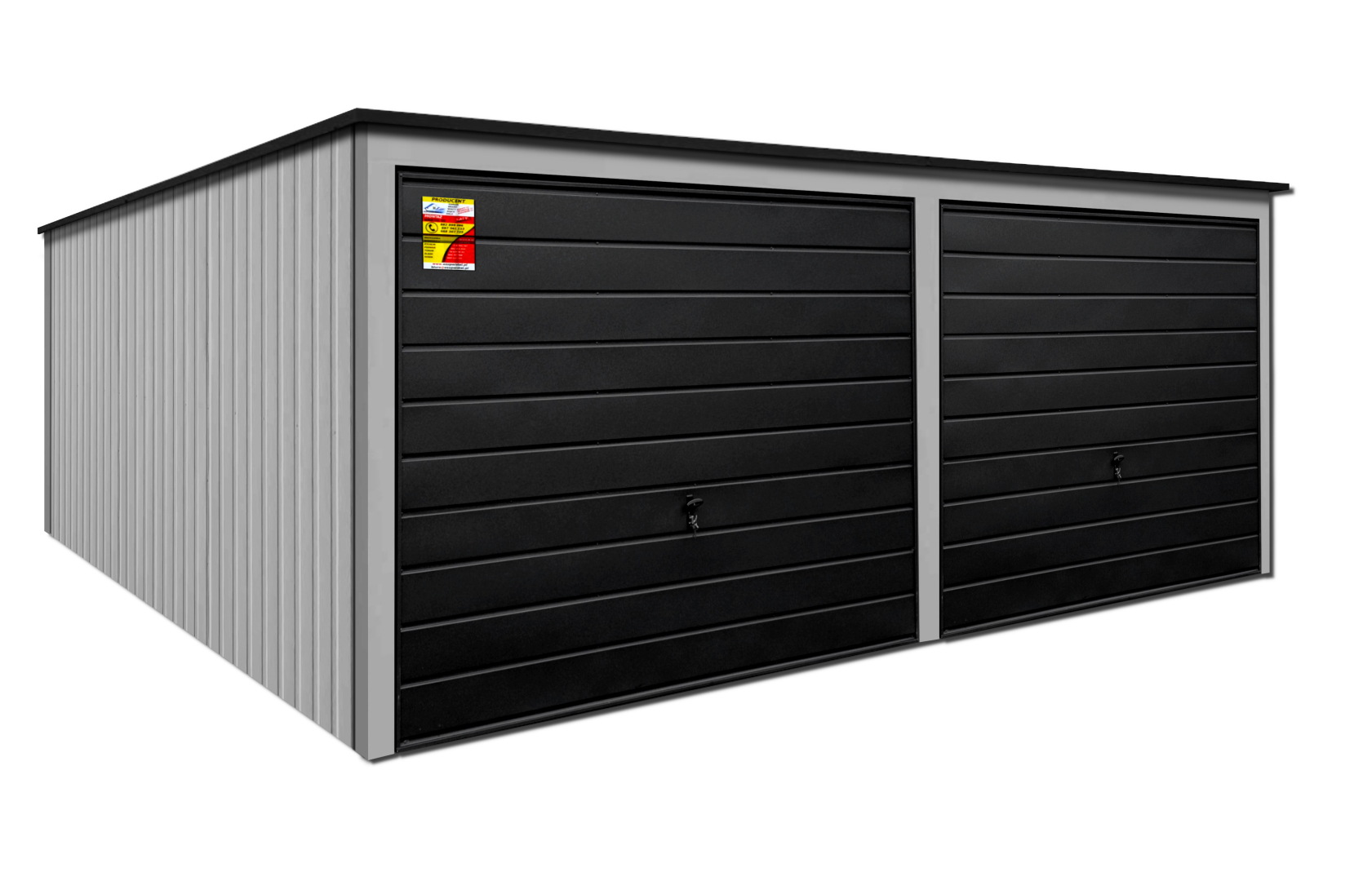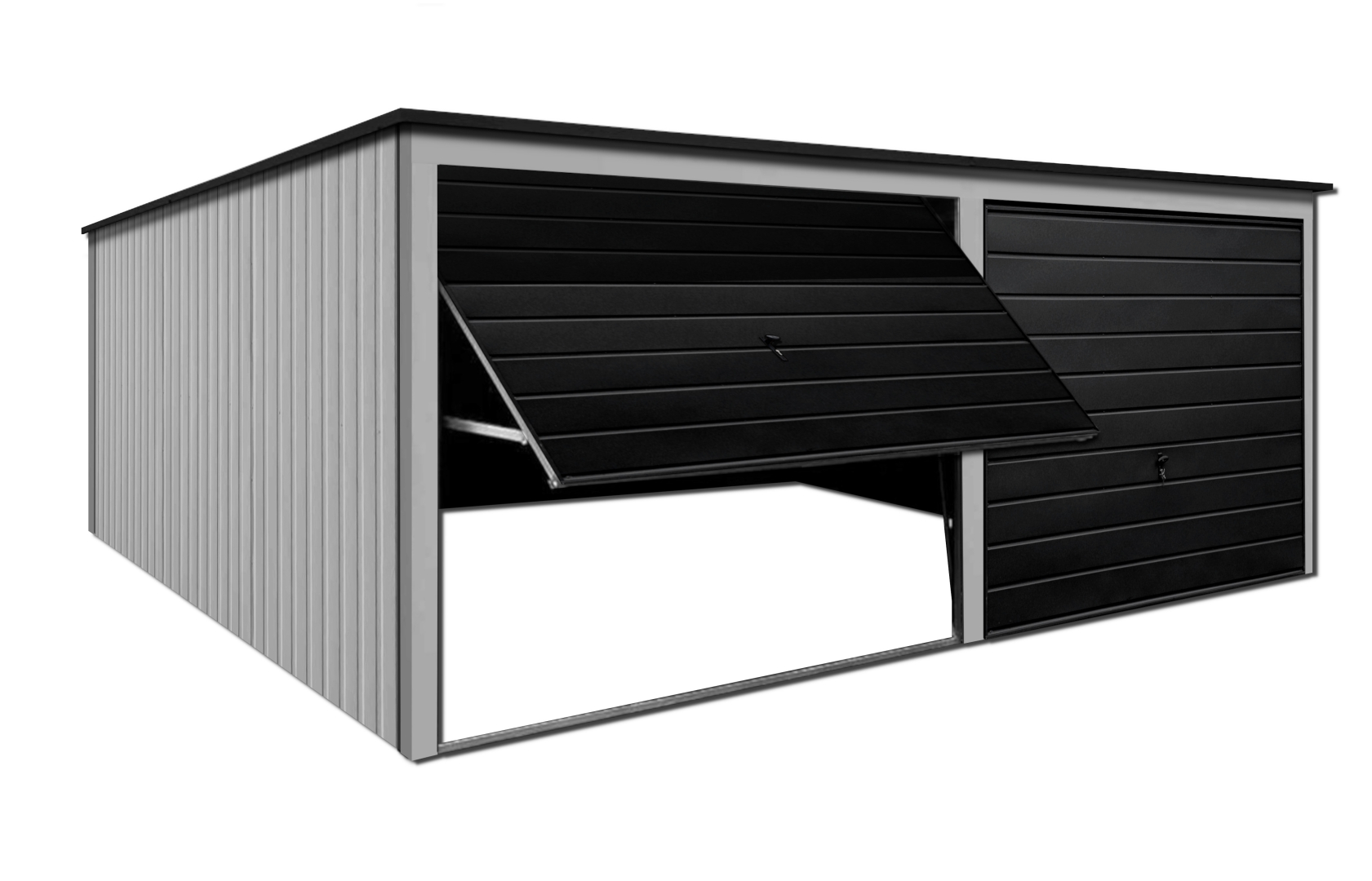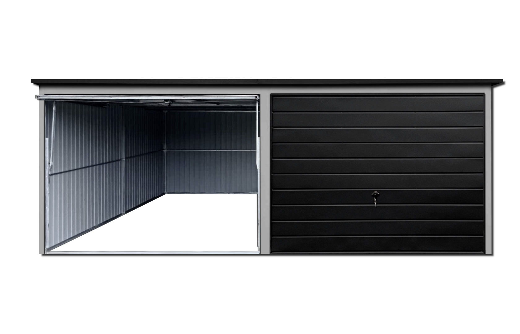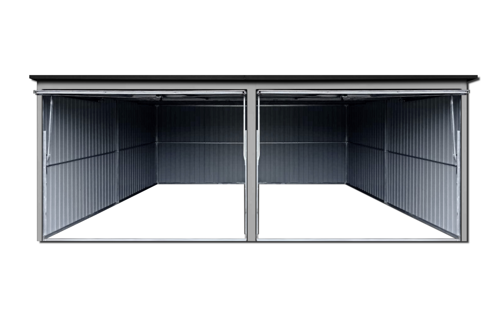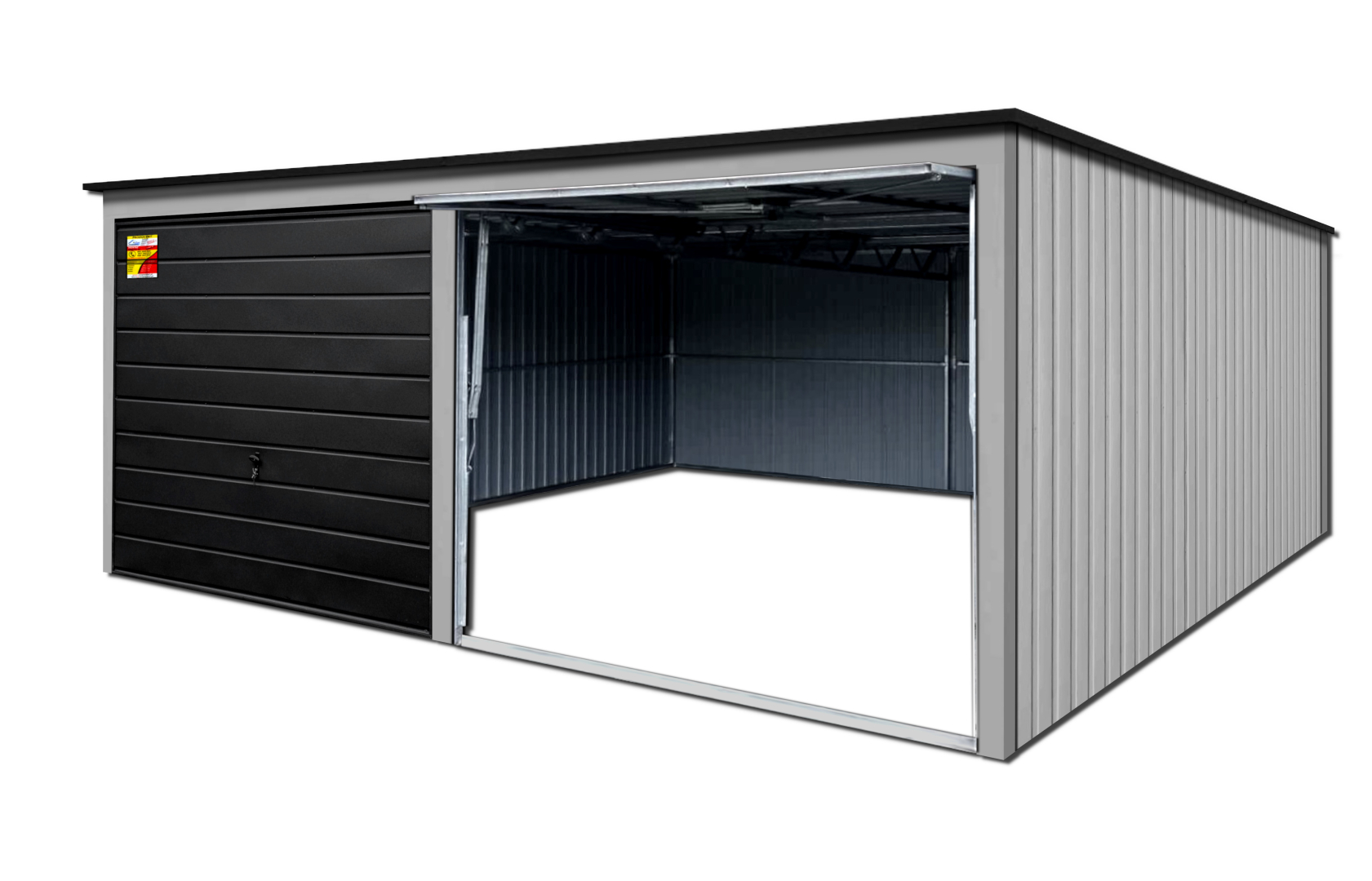 Garaż blaszany 4X4 LUX – Dwuspadowy dach, brama uchylna