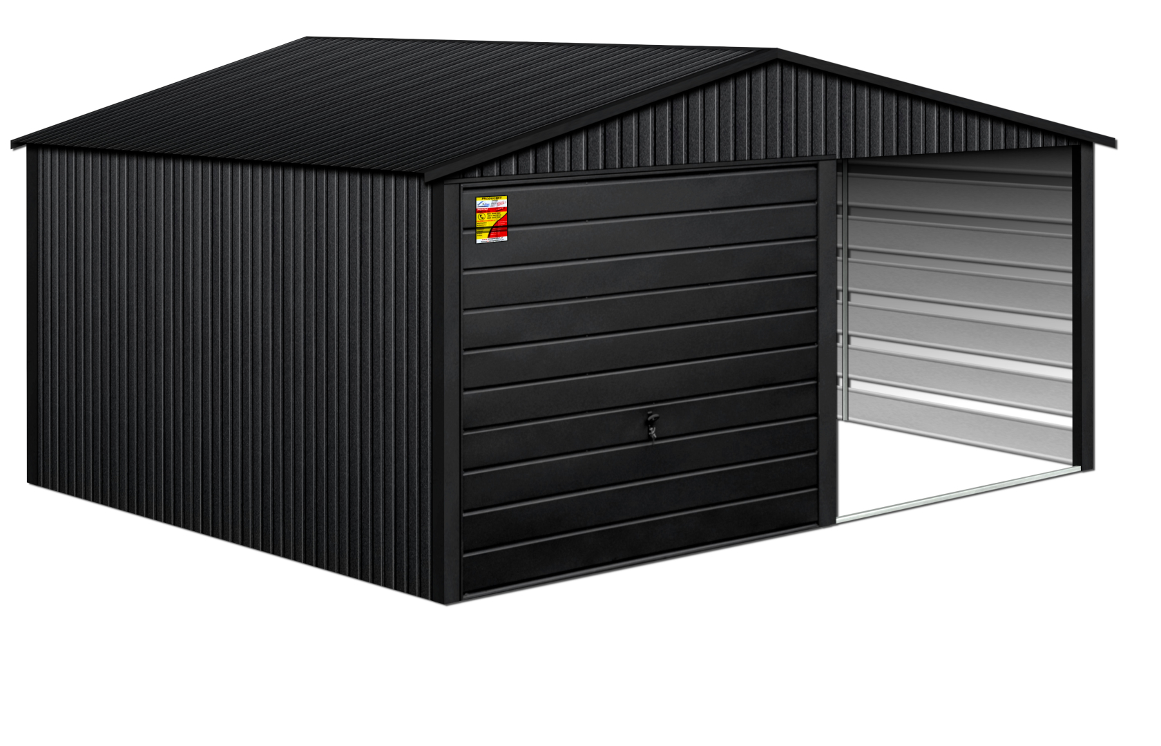 GARAŻ LUX 5X6 Z WIATĄ SMK – DWUSPADOWY DACH, BRAMA UCHYLNA, OKUCIA BLACHARSKIE DACHU I NAROŻNIKÓW