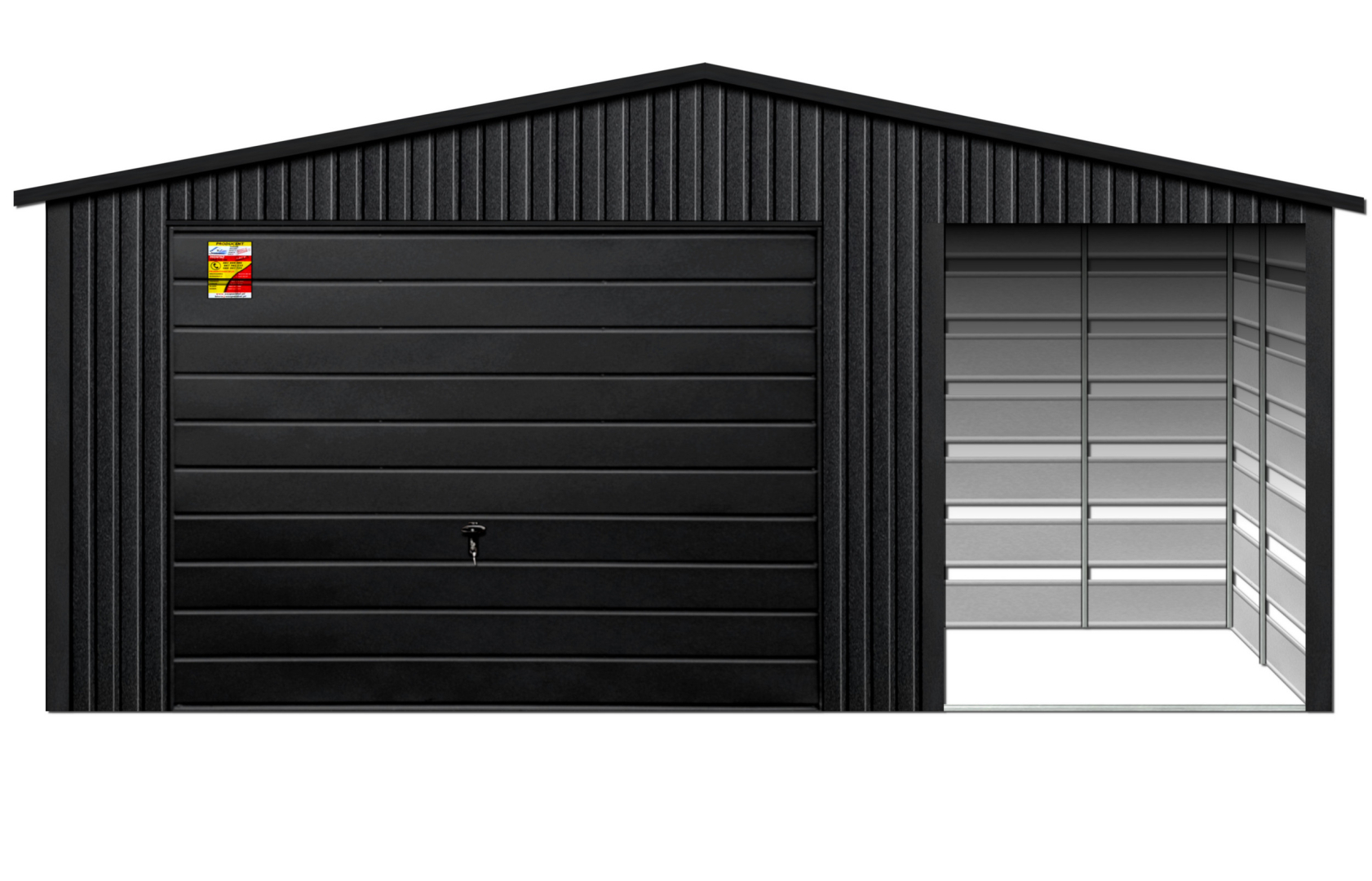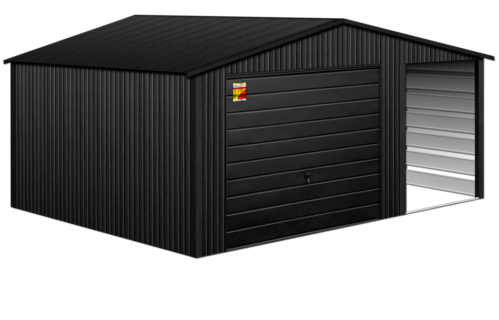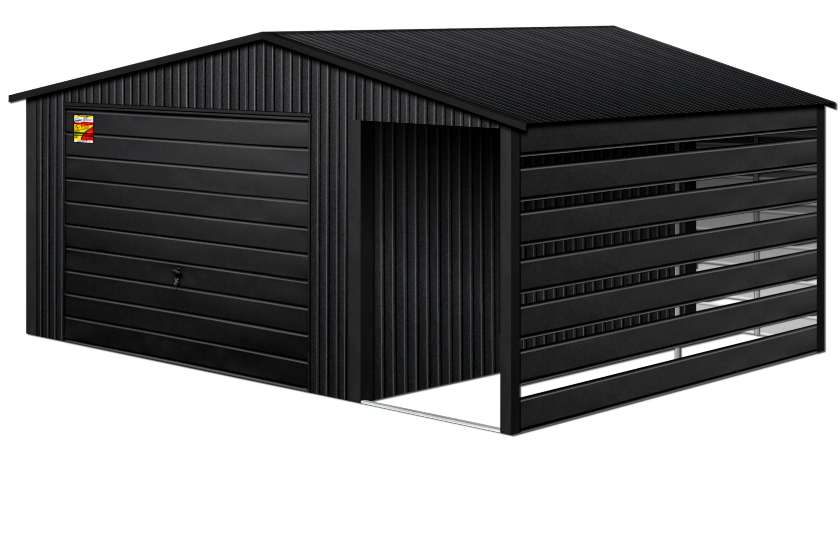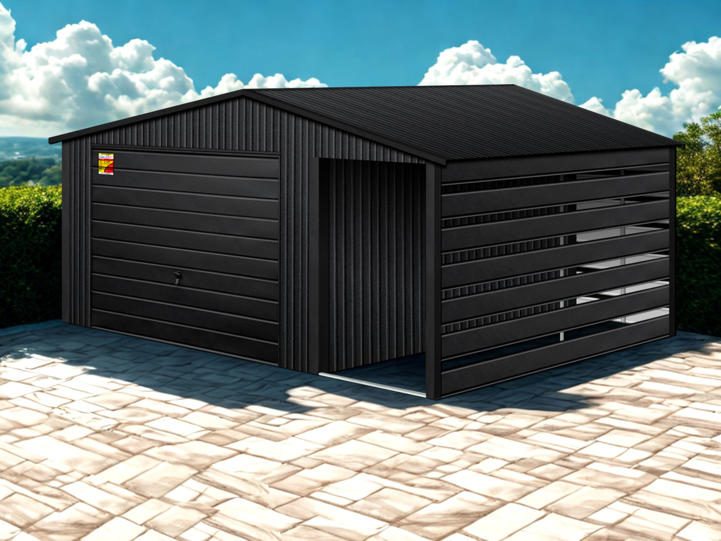 GARAŻ LUX 7X7 Z WIATĄ SMK – DWUSPADOWY DACH, BRAMA UCHYLNA, OKUCIA BLACHARSKIE DACHU I NAROŻNIKÓW