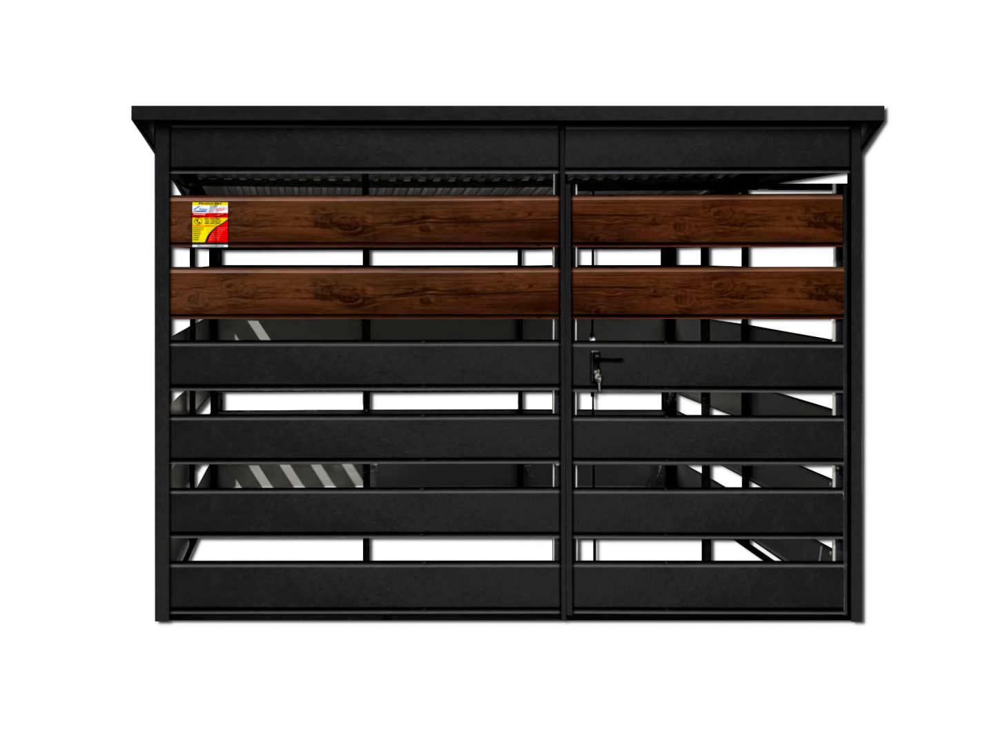 WIATA ŚMIETNIKOWA SMK 3X3 – DRZWI JEDNOSKRZYDŁOWE, OKUCIA BLACHARSKIE, CZARNY MAT & ORZECH