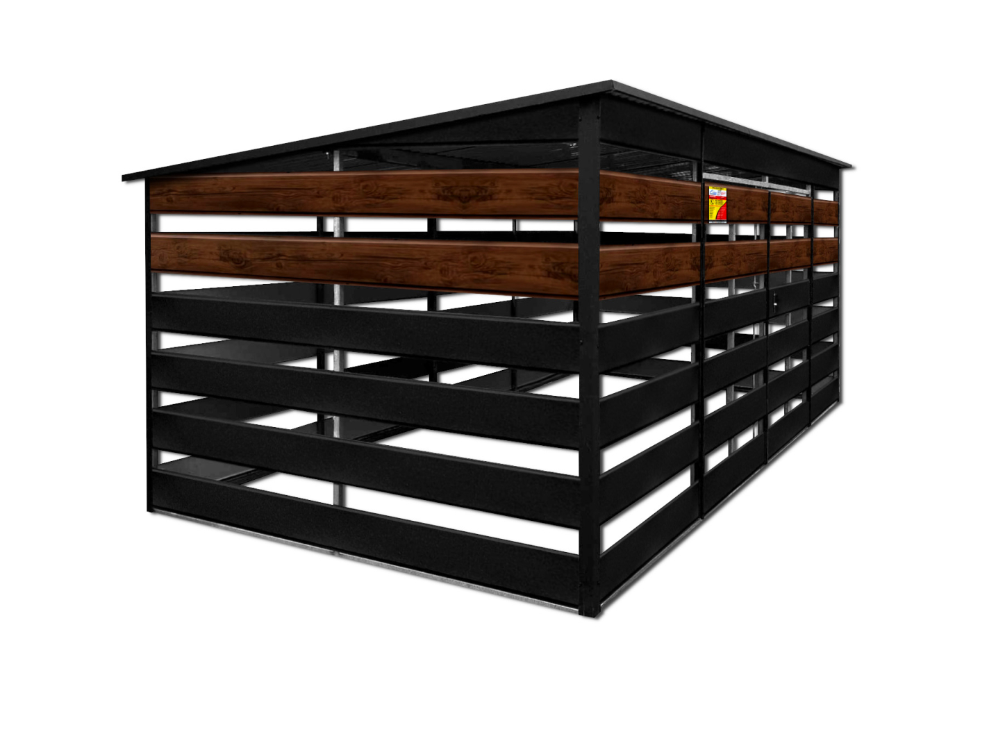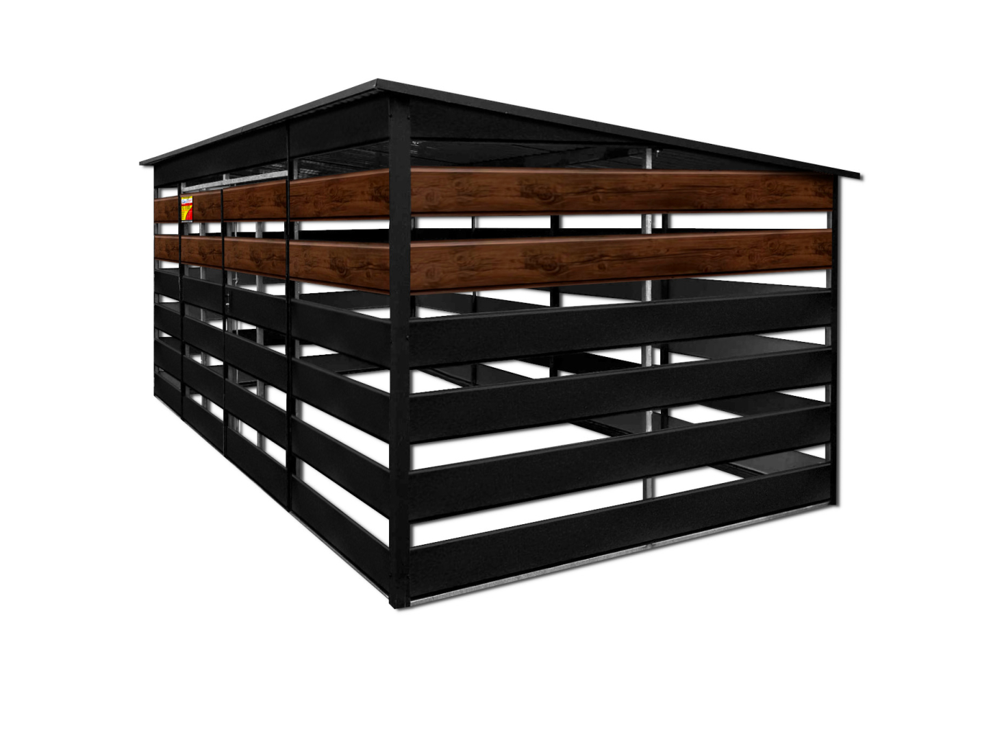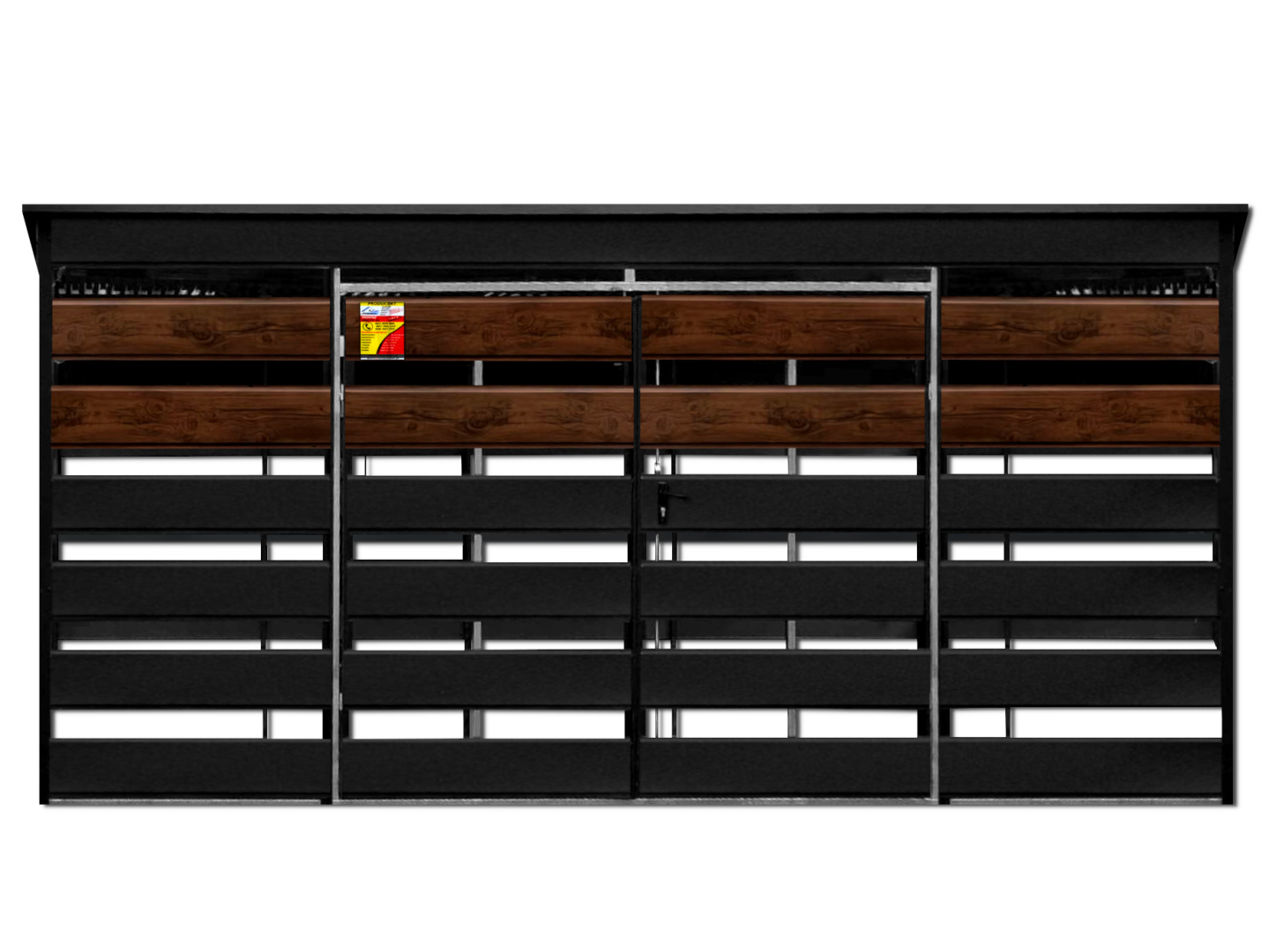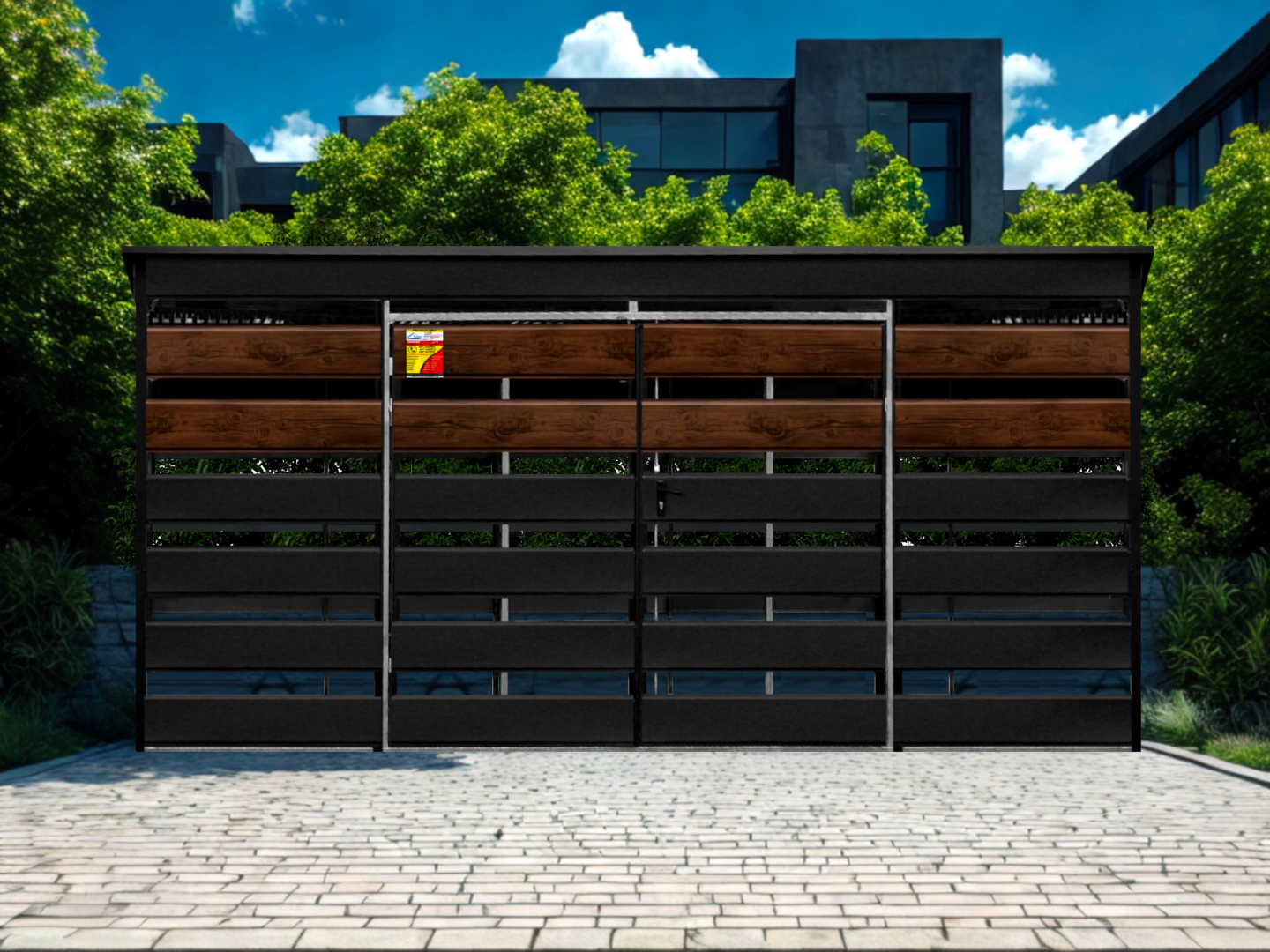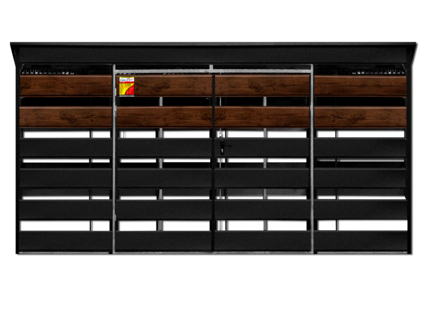 WIATA ŚMIETNIKOWA SMK 4,5X2,5 – DRZWI DWUSKRZYDŁOWE, OKUCIA BLACHARSKIE, CZARNY MAT & ORZECH