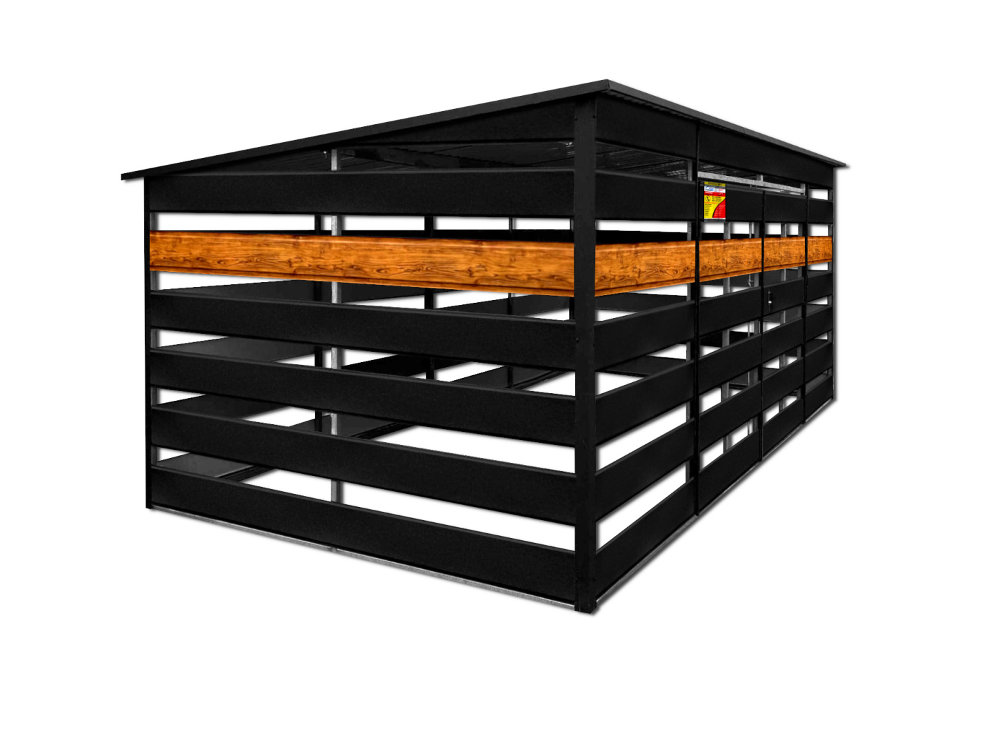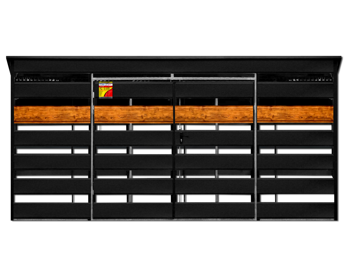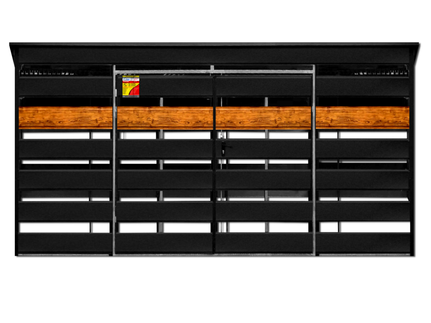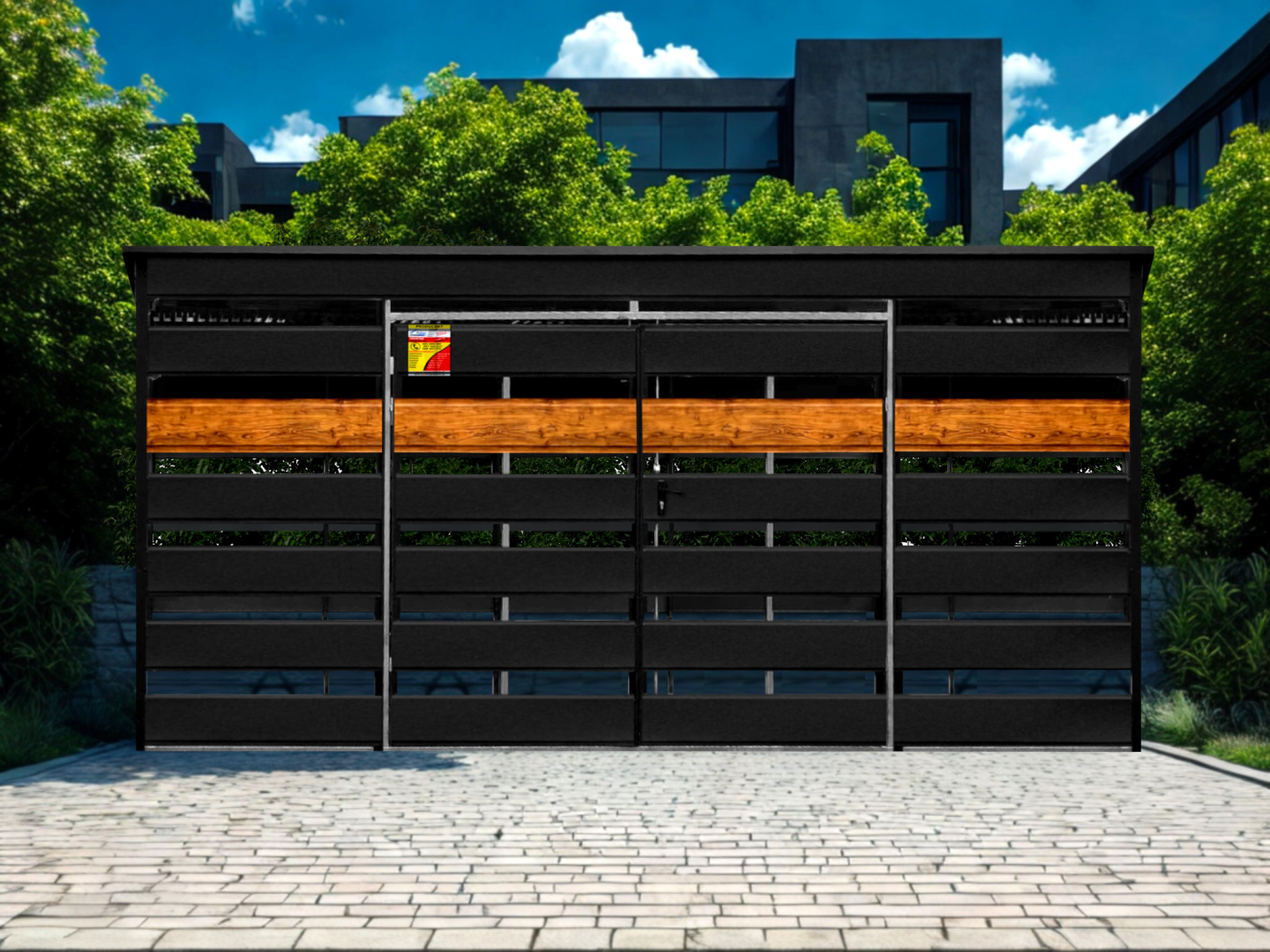 WIATA ŚMIETNIKOWA SMK 4,5X2,5 – DRZWI DWUSKRZYDŁOWE, OKUCIA BLACHARSKIE, CZARNY MAT & ZŁOTY DĄB
