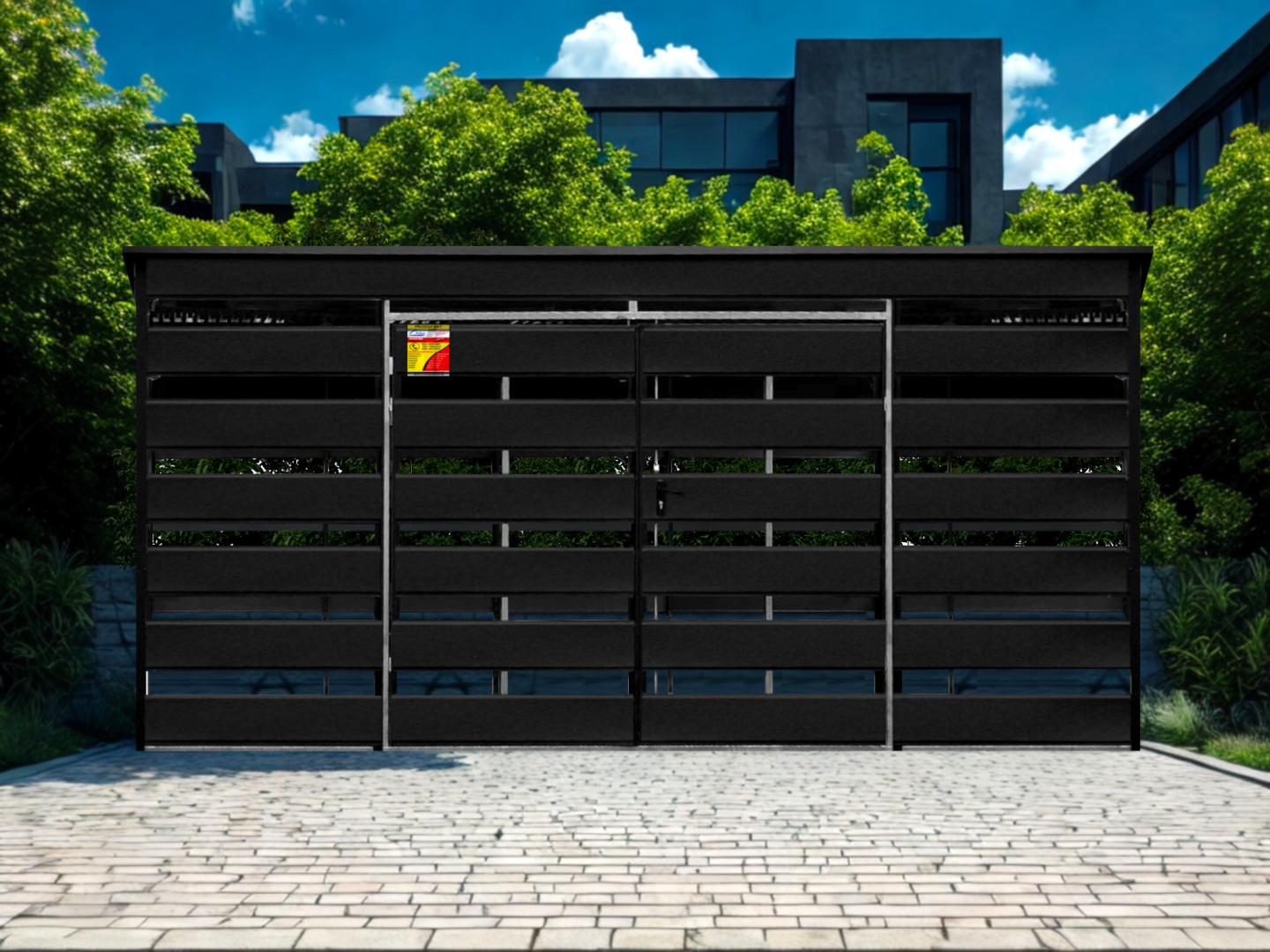 WIATA ŚMIETNIKOWA SMK 4,5X3 – DRZWI DWUSKRZYDŁOWE, OKUCIA BLACHARSKIE, CZARNY MAT